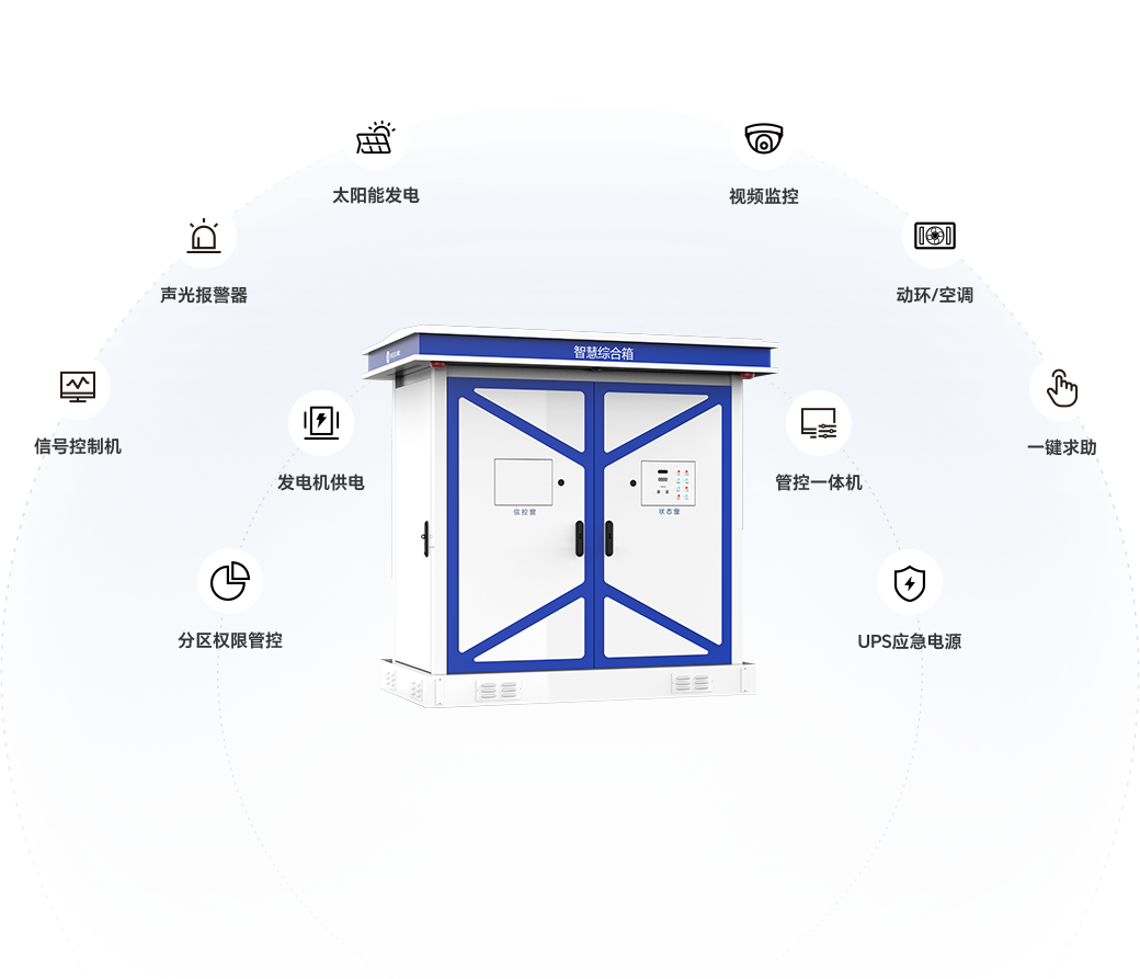 勤上自主研發的一體化“智慧綜合箱”全方位集成了城市的公安、交警、廣電配電等類型箱體的綜合解決方案。作爲智慧多功能杆管理系統重要的配套硬件,可承載公安、路燈照明、城管、電信運營等拓展業務,具備多路冗餘電源及備用電源供電管理、路口的交通信号控制系統、電子警察系統、行人闖紅燈檢測系統、櫃内視頻監控、交通路口信息綜合采集彙聚,并統一接入中心管控平台,實現信息可視化管理與綜合運維。